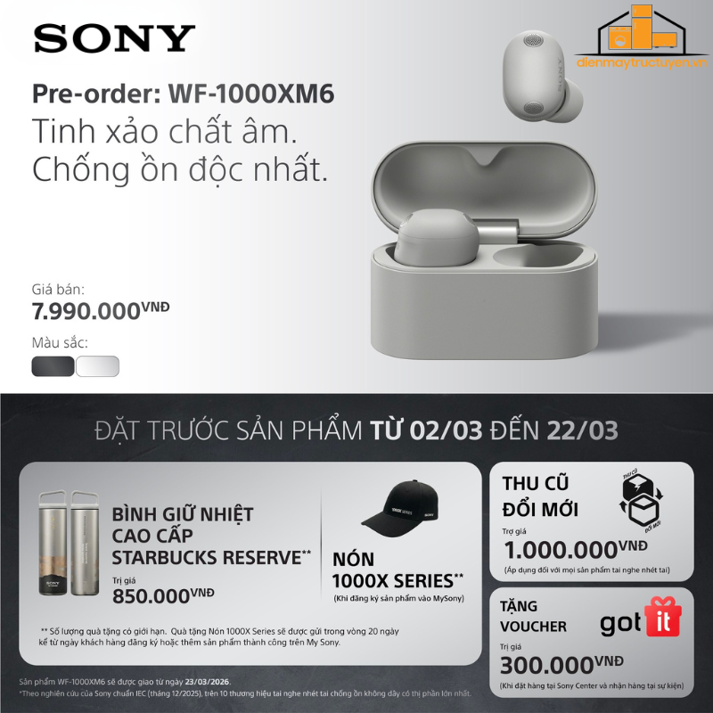Được chế tác từ kiến thức uyên thâm của các kỹ sư hậu kỳ âm thanh cùng công nghệ chống ồn tiên tiến, WF-1000XM6 mang đến âm thanh trung thực, giàu chi tiết. Thiết kế tiện dụng giúp tai nghe luôn vừa vặn tự nhiên khi sử dụng trong thời gian dài.